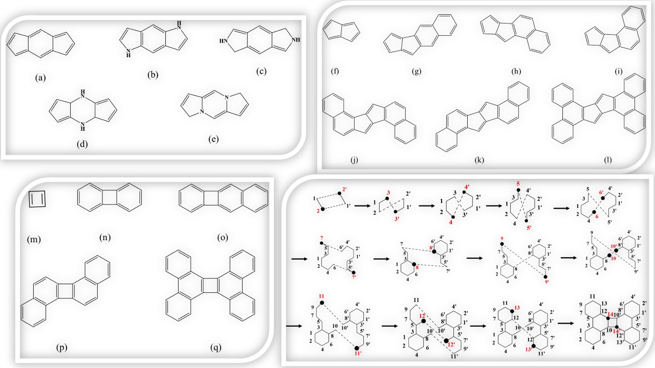 Polycyclic aromatic molecules are valued for stability from Hückel’s 4n+2 rule, while anti-aromatic 4n systems, though unstable, enable tuning of reactivity and optoelectronic properties.1 Fusing aromatic and anti-aromatic units modifies bond alternation, conductivity, and excited-state order, useful in photovoltaics.2 Singlet fission (SF), a spin-allowed process, converts one singlet into two triplets, reducing thermalization losses and exceeding the Shockley–Queisser limit.3 Efficient SF requires E(S1) ≥ 2E(T1), E(T2) > 2E(T1), and T1 ≈ 1.1 eV for silicon.4 Anti-aromatic units like s-indacene and pentalene show potential but low stability and E(T1) is very low; benzannelation or substitution improves performance.5 Systems fused with cyclobutadiene, pentalene, or s-indacene exhibit tunable ordering. Accurate excited-state prediction needs correlated methods beyond DFT; we apply PPP Hamiltonian with exact diagonalization and SDMRG, supported by EOM-CCSD, CASPT2 and DMRG-SCF.6 Results agree with experiments, guiding efficient SF chromophore design.